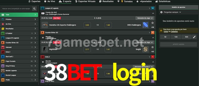 O 38bet login oferece uma grande seleção de opções de apostas em e-sports com probabilidades competitivas